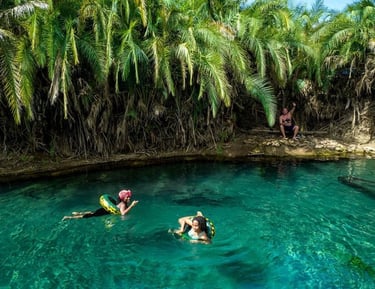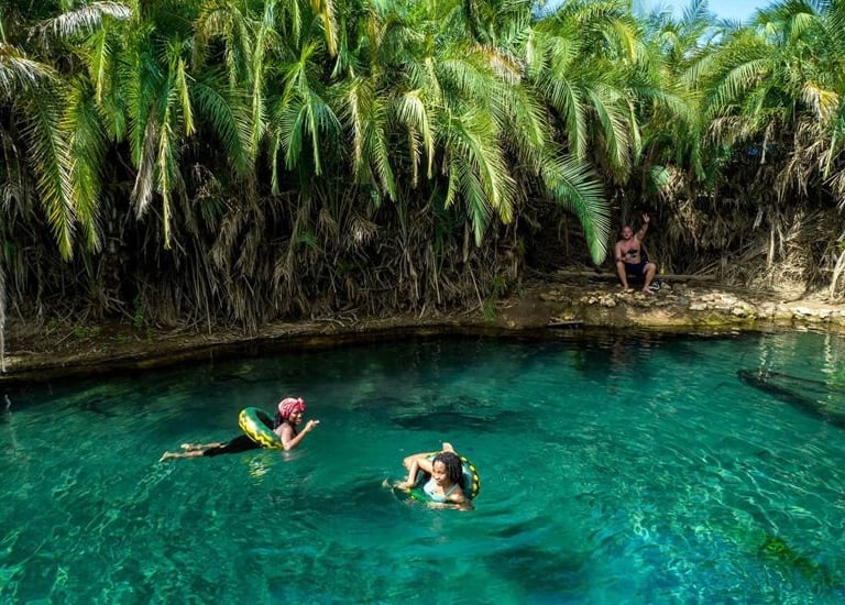 A natural oasis with crystal-clear turquoise water, its perfect for swimming, relaxing, and escaping the city heat. Surrounded by palm trees and volcanic rocks,offers a peaceful, refreshing experience for solo travelers, couples & families.