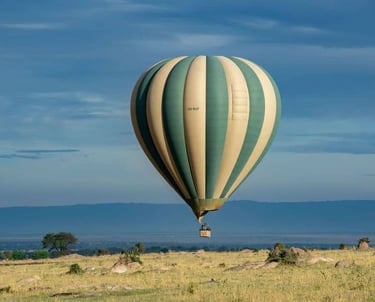 A sunrise hot-air balloon experience over the plains offers unforgettable views of wildlife, landscapes, and the golden Serengeti sunrise.